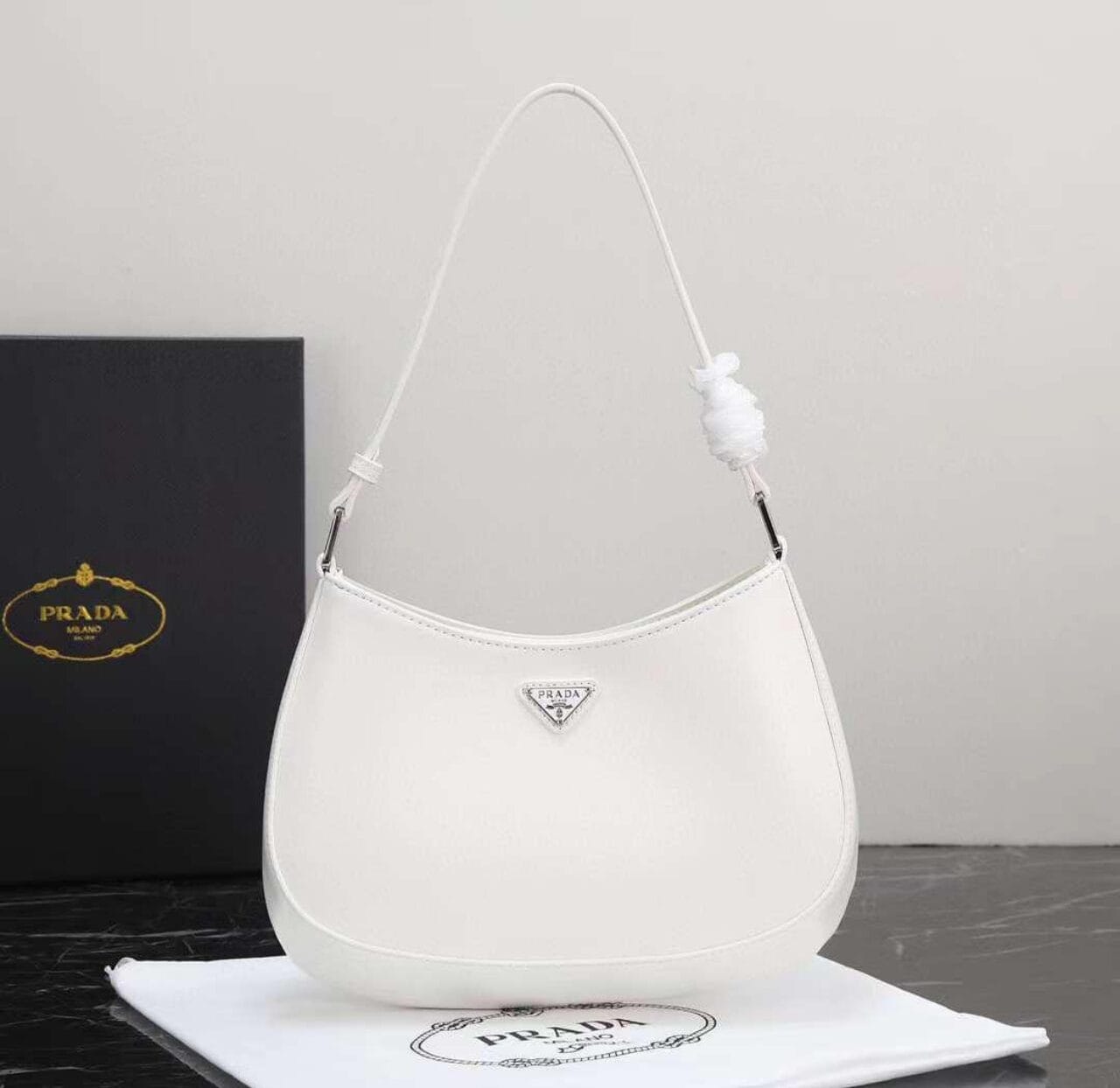 - Features a sleek, curved silhouette inspired by Prada’s archival 1990s hobo bags